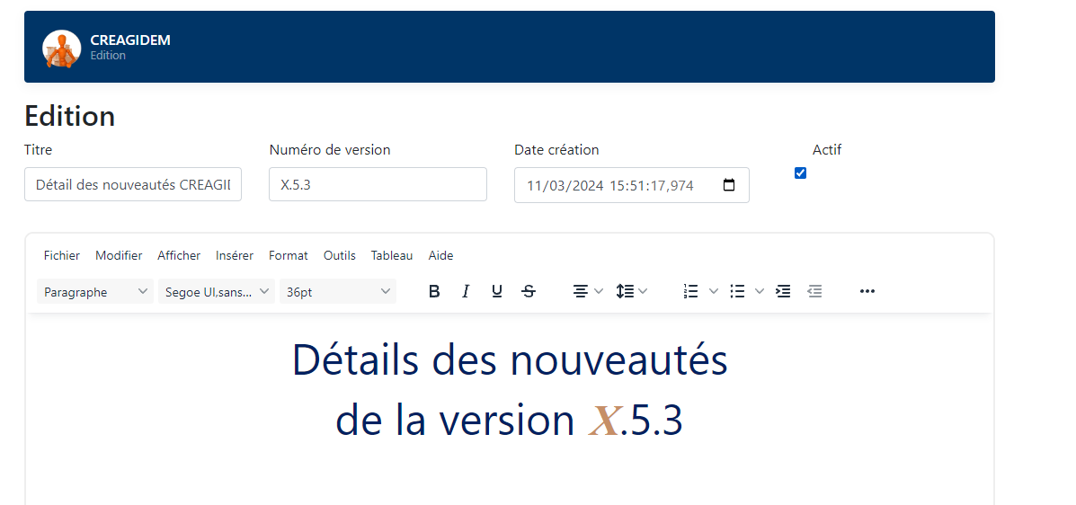 patchs ainsi que leurs annonces et permet a chaque nouvelle fonctionnalités sur un des produits la création d’un nouveau patch visible par les clients